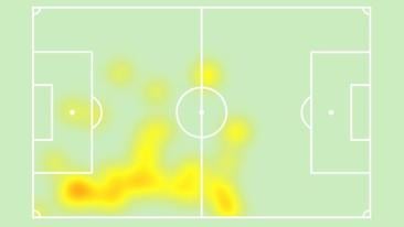 Su mapa de calor Sin delantero centro claro, Barrenetxea jugó por la izquierda y tuvo dos llegadas peligrosas en el centro del área. Al final bajó a recoger balones a campo realista.