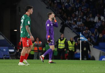 El portero es como el bulto que sobresale del coche, como ese lamparón en la camisa antes de una reunión con el jefe. Sobre todo cuando falla. El rostro del cancerbero navarro era un libro abierto. Nadie como él sabía lo que suponía esa acción. Casi una hora en inferioridad y además sin poder jugar el siguiente partido de Liga. En San Mamés. Casi nada.