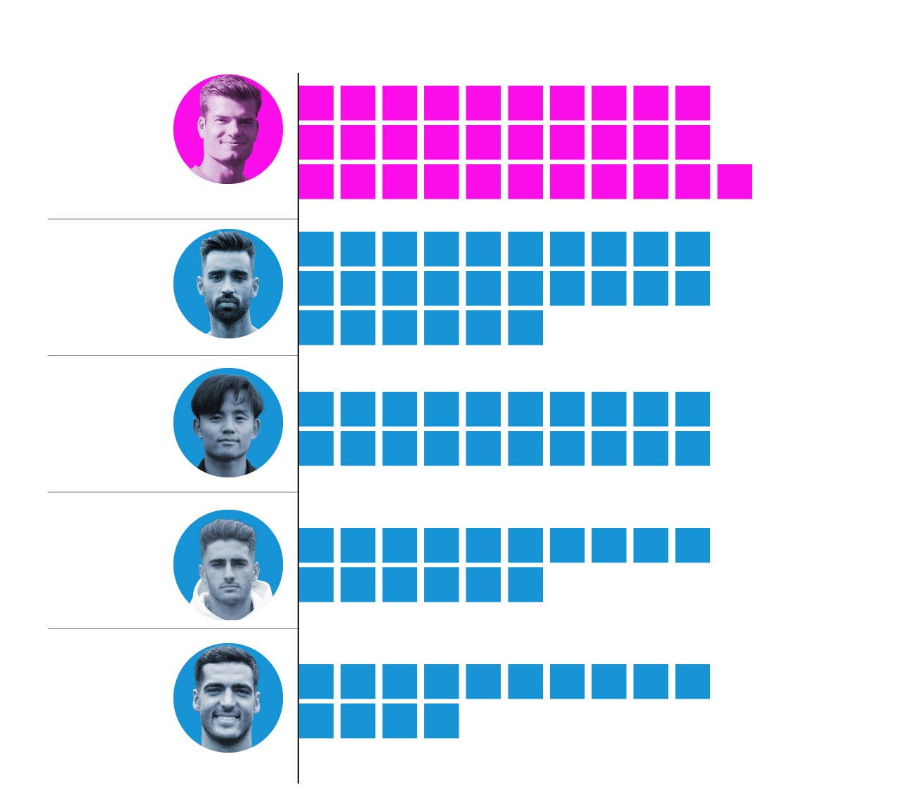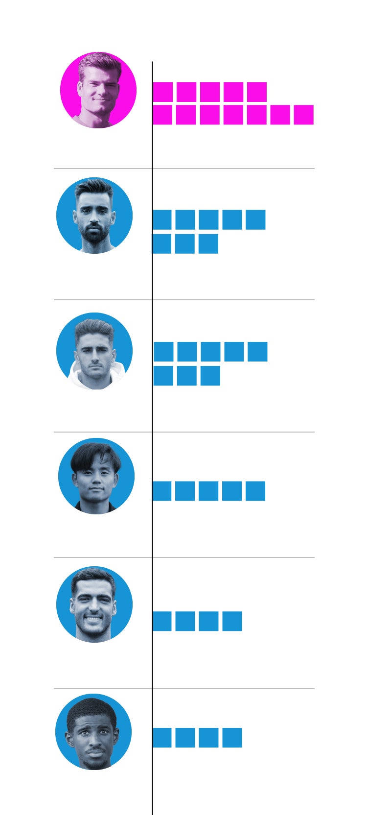 Tiene el mayor acierto a gol, es el que más dispara y el que genera más peligro con sus conducciones.
