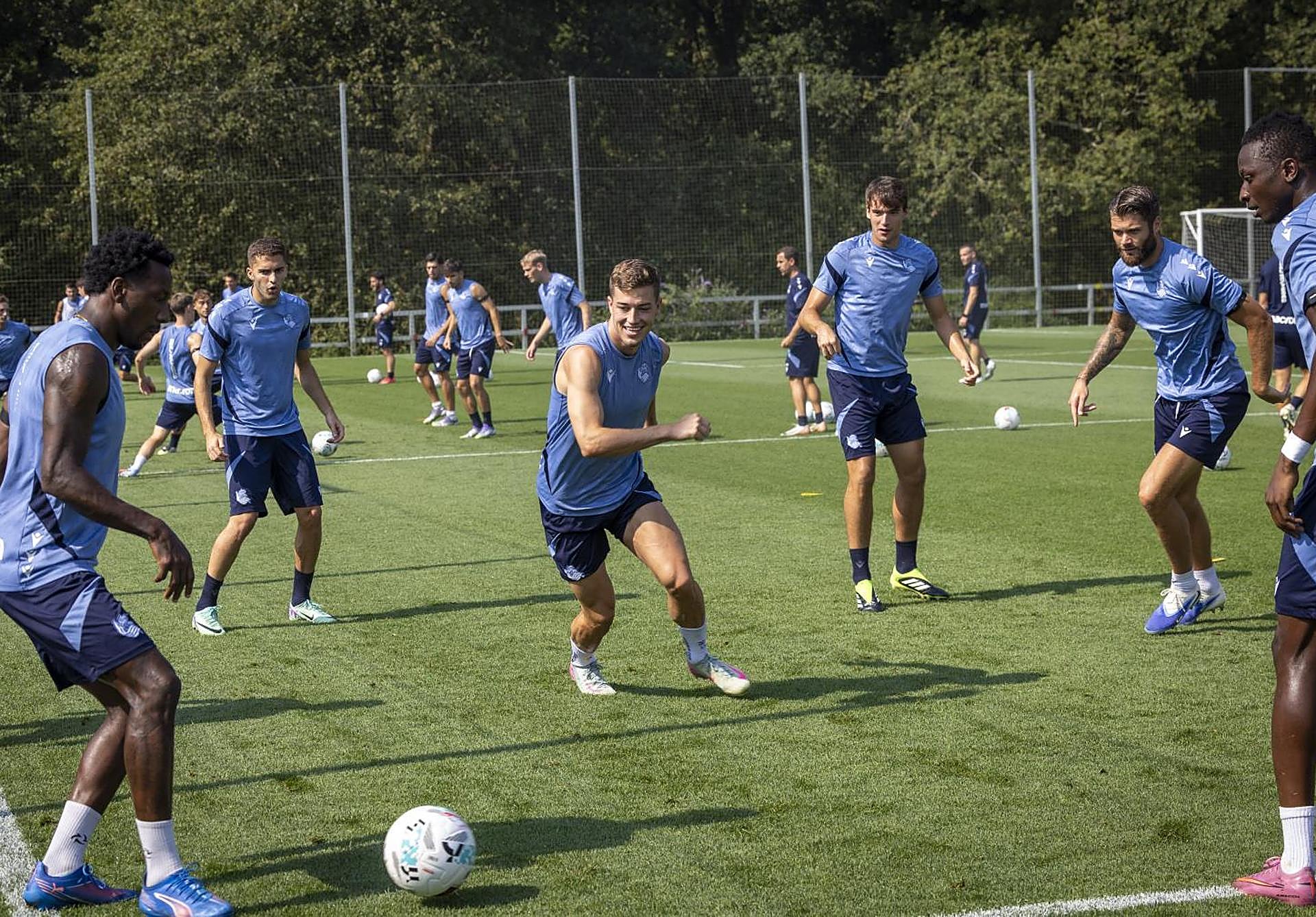 Cuatro de estos cinco futbolistas que se han quedado sin dorsal se han entrenado con normalidad en Zubieta: Becker, sometido al habitual 'pasillo de collejas' por su reciente paternidad, Sadiq, Javi López y Odriozola. Carlos Fernández pidió hace ya un tiempo ejercitarse por su cuenta para evitar el riesgo de lesión cuando sigue buscando un equipo fuera de la Real.