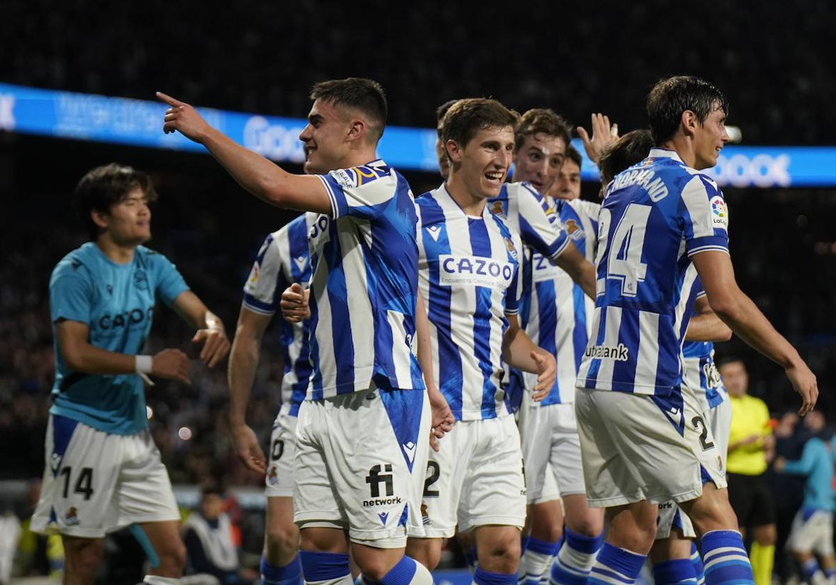 Remmiro; Gorosabel (Aritz, m.64), Zubeldia (Pacheco, m.64), Le Normand, Aihen; Zubimendi, Merino, Silva (Illarramendi, m.88); Kubo (Barrenetxea, m.74), Sorloth (Carlos Fernández, m.74) y Oyarzabal.