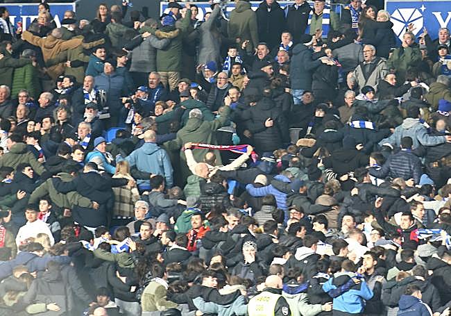 La alegría volvió a Donostia gracias a los goles de la Real Sociedad, que venció anoche 2-0 a Osasuna. La alegría de los aficionados txuri-urdines se dejó notar en el Reale Arena y los seguidores se animaron a ponerse de espaldas y celebrar los goles de su equipo contra los vecinos. Los fotógrafos de El Diario Vasco captaron una imagen singular, la de un aficionado rojillo con cara de circunstancias en medio de la celebración de los seguidores txuri-urdines. El aficionado del conjunto navarro infiltrado en la zona de los seguidores de la Real Sociedad no tuvo más remedio que aguantar el chaparrón y ver cómo su equipo quedaba eliminado de la Copa del Rey.