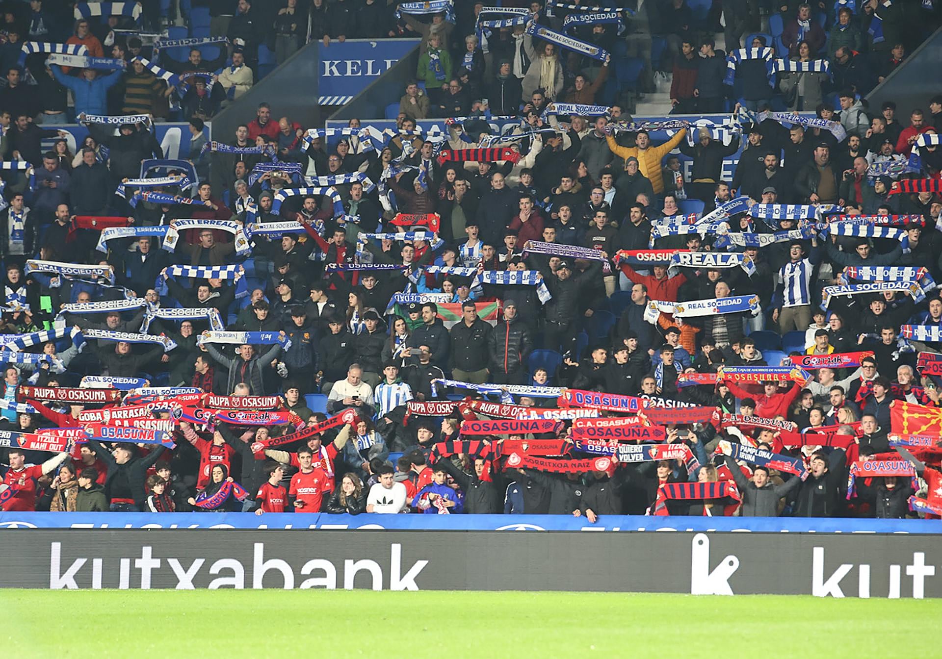 Lo cierto es que la presencia de seguidores del conjunto pamplonica fue numerosa en el Reale Arena y se dejaron ver por cada rincón de las gradas, con abundante presencia en la Aitor Zabaleta. Por grupos, más grandes o pequeños, e incluso en solitario, asistieron al buen arranque de su equipo primero y a una derrota que se hacia inevitable con el paso de los goles y con la tarjeta roja que vio el jugador de Osasuna Catena.