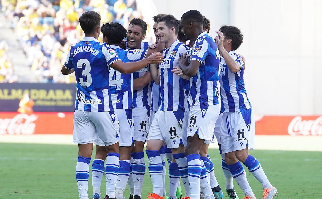 Llegar y besar el santo. El debut de Take Kubo en competición oficial con la camiseta de la Real Sociedad no ha podido saldarse con mejor resultado. Fue titular, disputó 78 minutos y marcó el gol de la victoria, el que da los primeros tres puntos al conjunto txuri-urdin en su estreno liguero ante el Cádiz en el Nuevo Mirandilla. 'Take mate'.