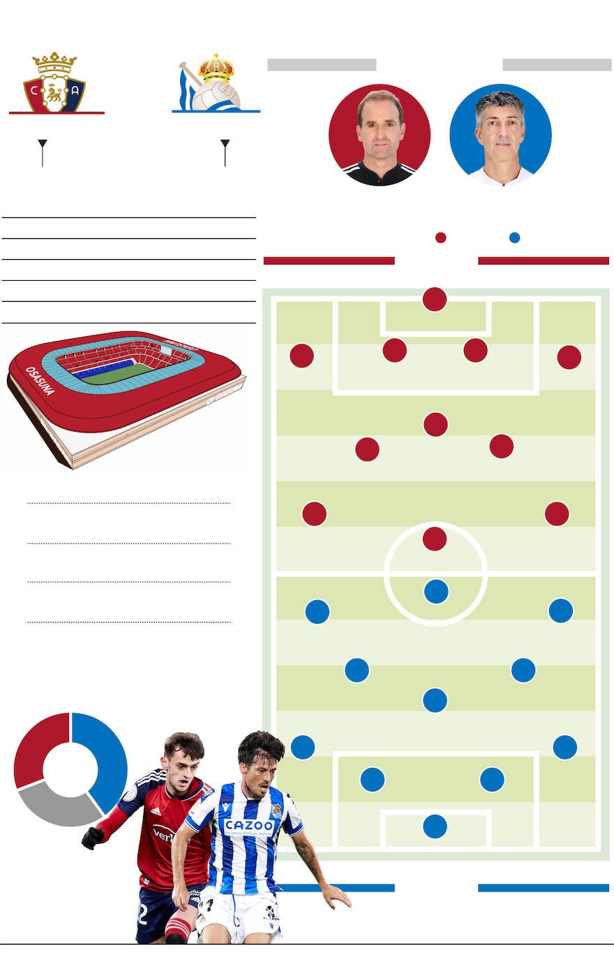 Se espera sobre el verde un choque de estilos. El fútbol combinativo y de control de la Real ante el juego más vertical y directo de Osasuna, si bien los dos equipos saben mutar de piel y adaptarse a registros diferentes. La teoría establece que al conjunto txuri-urdin le conviene alargar sus posesiones y madurar las jugadas minimizando los riesgos y que a los rojillos les puede beneficiar un duelo más alocado, de ida y vuelta. Sin embargo, la calidad de los jugadores de arriba de la Real, reivindicada esta misma semana por el propio Kubo en estas páginas, puede ser letal para Osasuna en un toma y daca, del mismo modo que un ritmo pausado de juego en el que se imponga el rigor táctico puede acabar premiando la inspiración puntual de Osasuna en una de las escasas ocasiones de gol que pueda tener. En definitiva, un partido trampa que requiere tener los ojos bien abiertos.