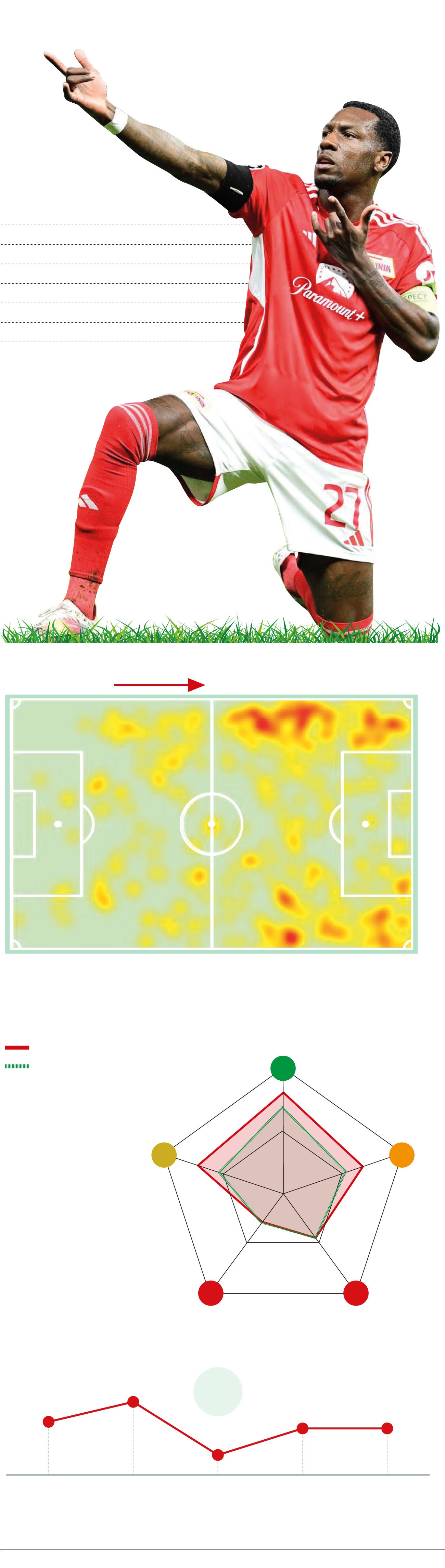 Se trata de un delantero que puede jugar en los tres puntos del frente de ataque, aunque habitualmente se maneja por la banda derecha. Esta temporada el jugador nacido en Amsterdam ha disputado ya 18 partidos oficiales con el Unión Berlín, club con el que finaliza contrato este próximo mes de junio.