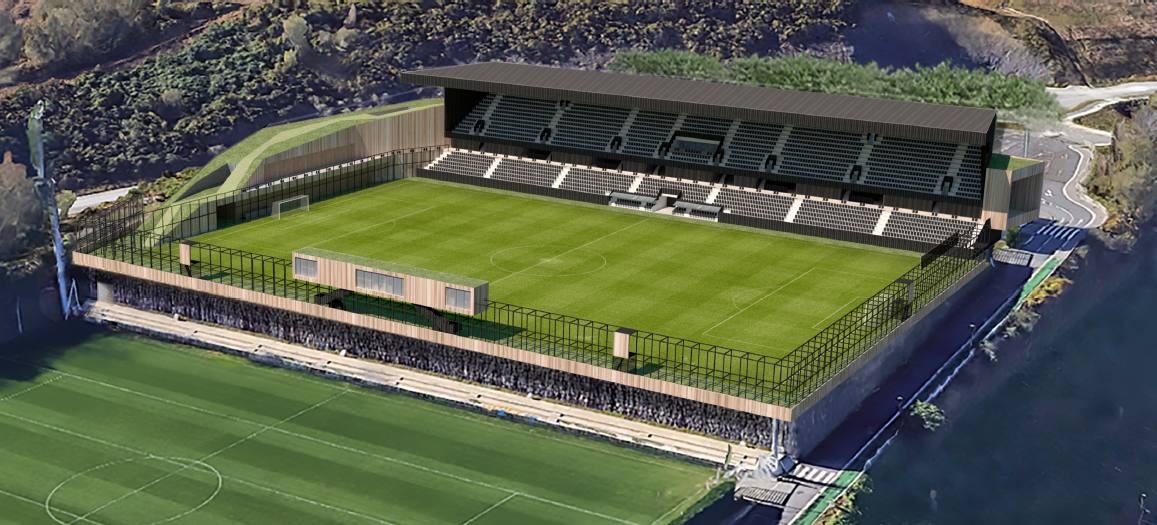 Mucho más adelantada va la obra del edificio donde se ubicará el vestuario y el gimnasio del primer equipo, detrás de la portería sur del campo, la más cercana a la cuesta de acceso a las instalaciones desde Mercabugati. Este nuevo edificio conectará con la tribuna principal y quedará alineado en forma de L.