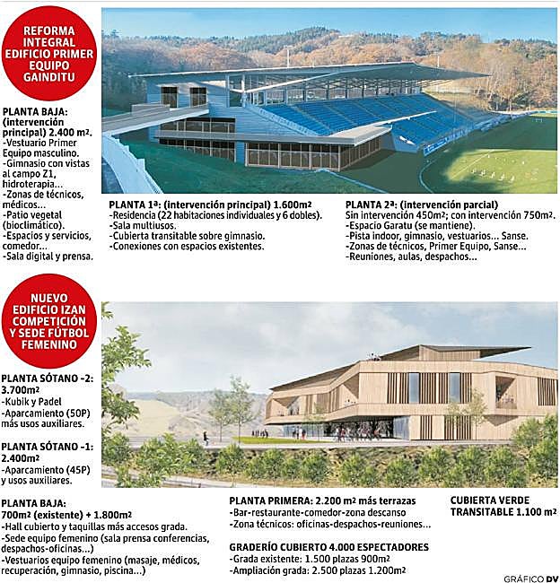 Así las cosas, el primer equipo femenino y el primer equipo masculino equiparan sus instalaciones, aunque el resto de edificios de Zubieta también tendrán una más que notable transformación. Gainditu, la sede del primer equipo, será única y exclusivamente para los pupilos de Imanol Alguacil. Las dos primeras plantas sufrirán intervenciones completas, mientras que la segunda planta, aquella en la que trabajará el Sanse, se verá modificada parcialmente.