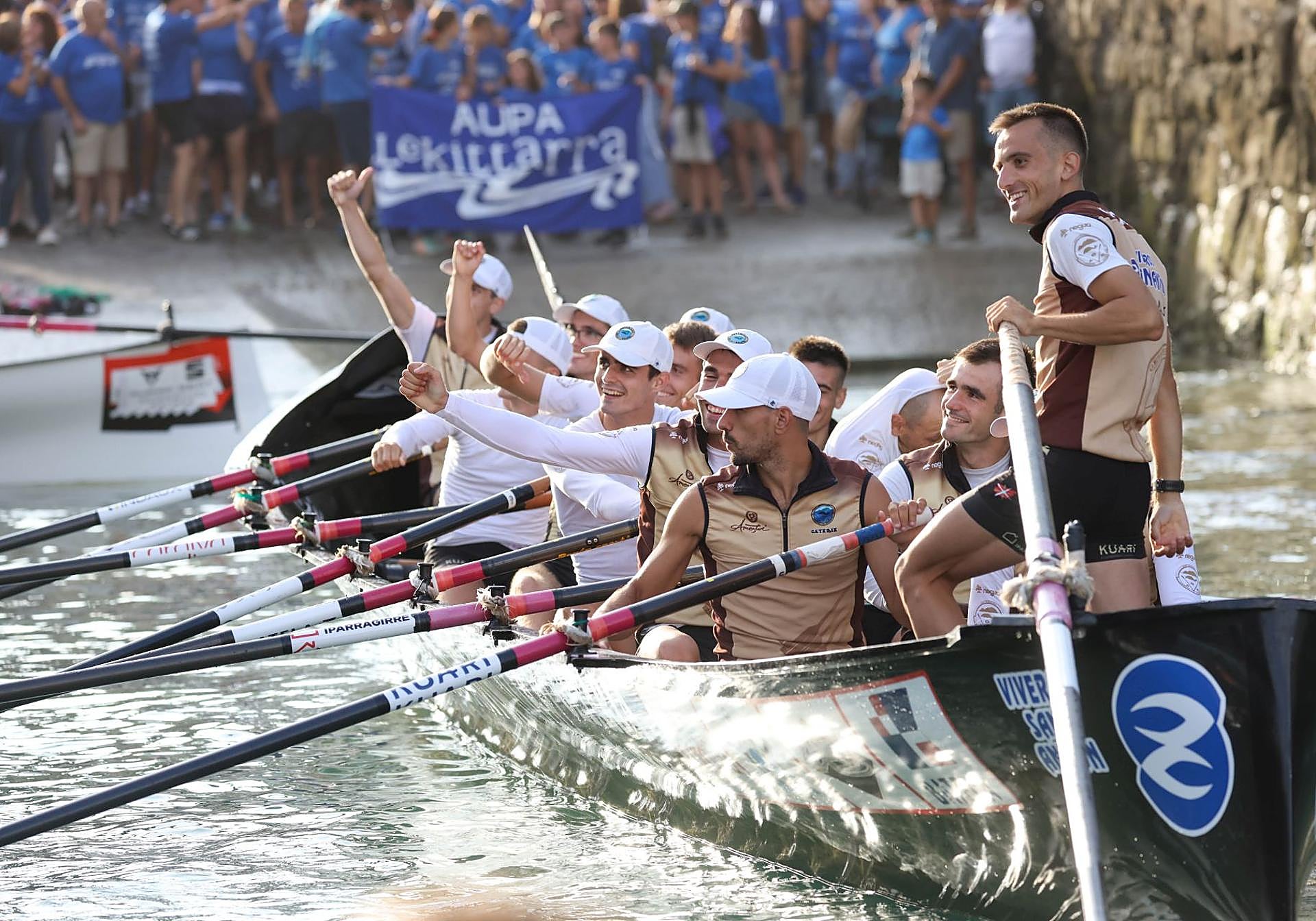 Estar en el agua a la espera de la orden de salida es una sensación única, son segundos en los que recuerdas todo el trabajo que has hecho hasta poder formar parte de la Champions del remo». Igor Gómez (Getaria, 1998), uno de los remeros con más experiencia de la 'Esperantza', explica cómo es la rutina de un deportista de cara a afrontar un domingo de la Bandera de La Concha. Alguien puede intuir que la preparación empieza desde que suena el despertador el día de la regata, pero nada más lejos de la realidad: la cita va mucho más allá, hay que cuidar todos los detalles desde meses antes porque remar en la bahía los dos primeros domingos de septiembre es el sueño de todo remero de banco fijo y llegado este momento hay que intentar no dejar ningún cabo suelto.