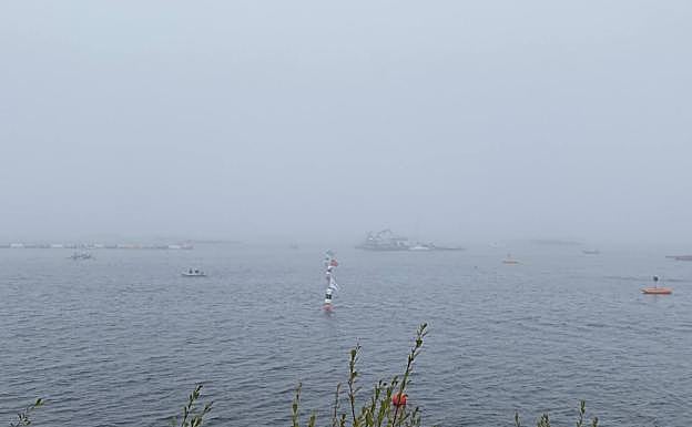 Las embarcaciones llegaron a la rampa de embarque en el Porto de Cabo da Cruz sabedoras de lo que allí iban a encontrarse. «Nos han avisado en el desayuno», confirmó el preparador de Urdaibai, Iker Zabala. La densa niebla impedía la visión a escasos metros de distancia y la situación mar adentro no era mejor según iban confirmando quienes se echaban al agua para iniciar el calentamiento. La posibilidad de que se suspendiera la regata era grande y cuando llegó la hora de dar la salida a la primera tanda no quedó más remedio que aplazarla treinta minutos, tal y como indica el reglamento.