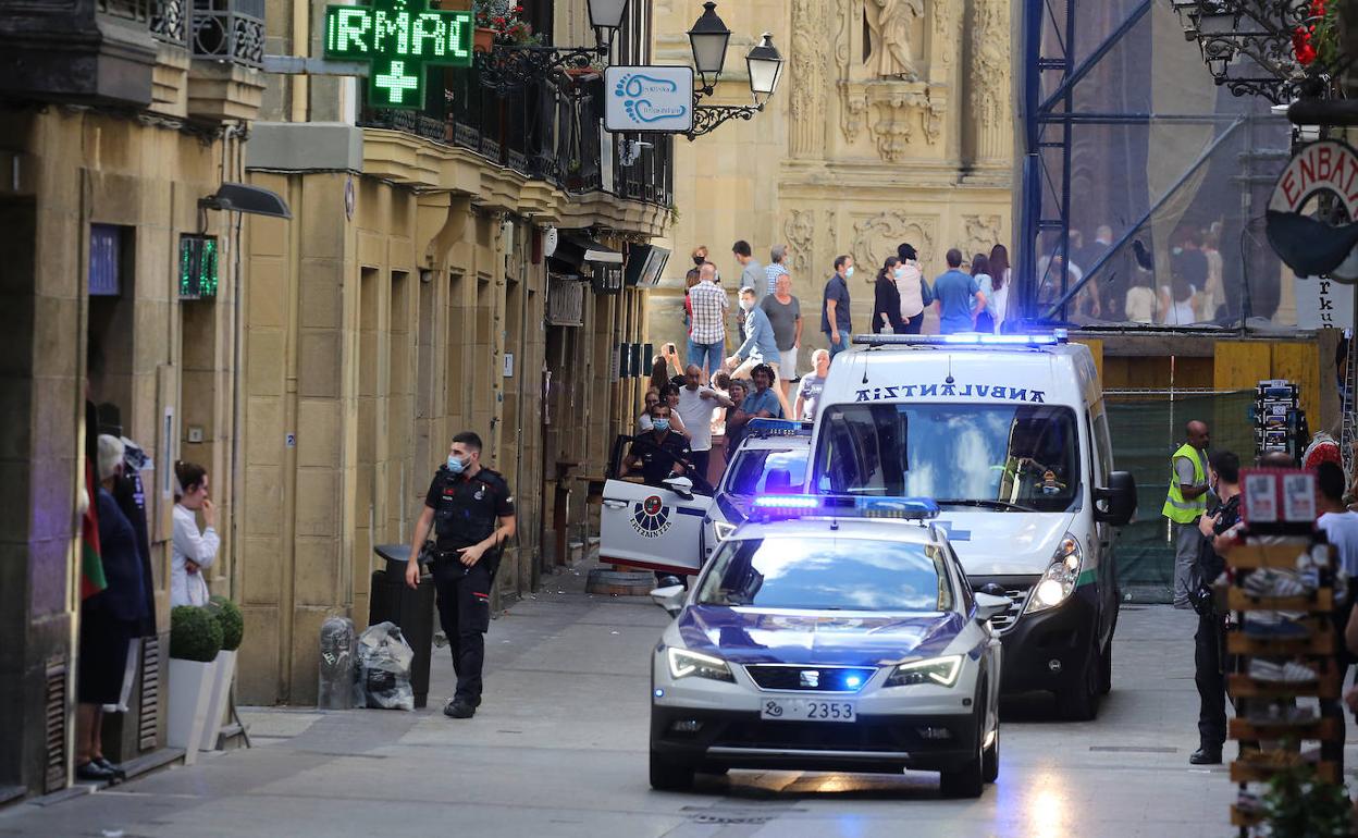 Todo comenzó sobre las 16.00 horas, cuando un vecino del número 21 de la calle Mayor, el bloque de viviendas más cercano a la Basílica de Santa María en la Parte Vieja donostiarra, empezó a proferir amenazas a los operarios que trabajan en la obra del edificio de en frente.