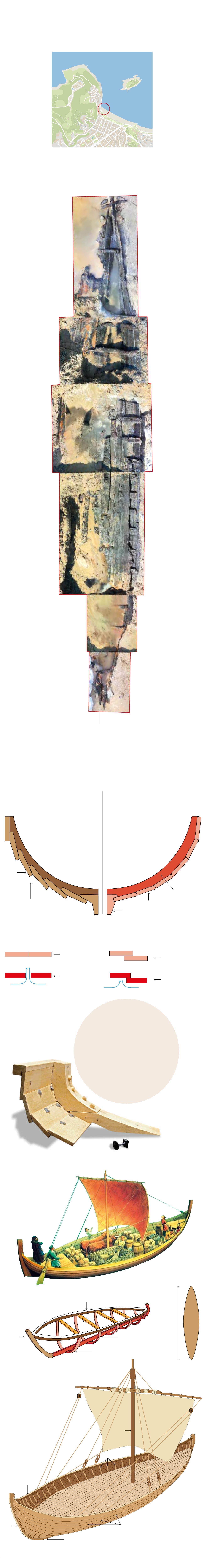 Montaje fotográfico en el que se aprecia, desde una vista cenital, la estructura y dimensiones del pecio