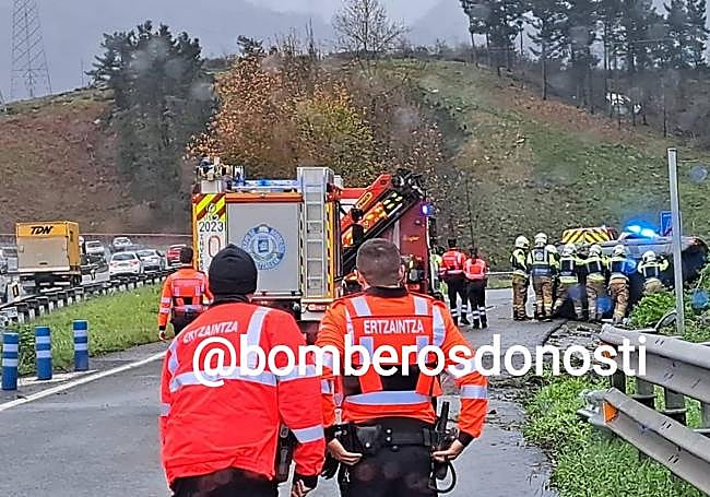 Por otro lado, los bomberos han tenido que efectuar otra salida, esta pasadas las 15.00 horas, por un accidente en la A-1 en Lasarte, a la altura de la salida hacia la rotonda de Belartza. Un vehículo ha dado «varias vueltas de campana» y el ocupante no podía salir, por lo que ha sido necesaria la ayuda de los bomberos para también liberarle.