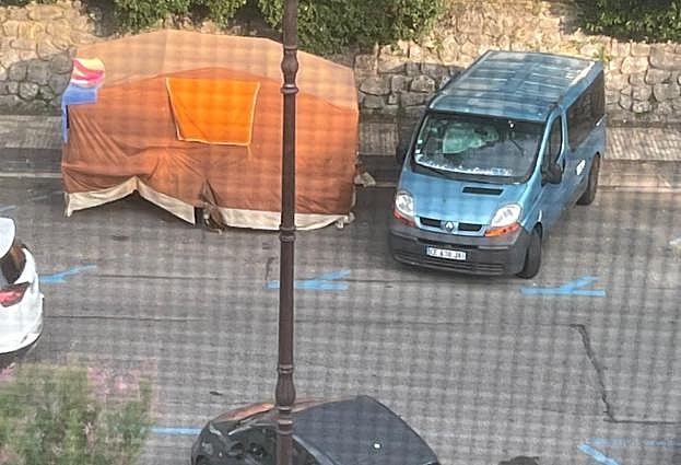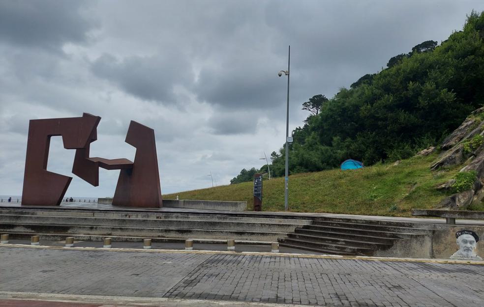 En las últimas horas los lectores nos han seguido compartiendo más imágenes que reflejan este problema. En una de ellas puede verse una tienda de campaña en otro parte del Paseo Nuevo, junto a la escultura de Jorge Oteiza, ¿quizá la misma que se vio el domingo desplazada unos metros?