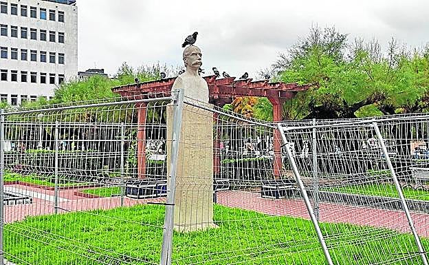 El busto de Salaberria y la escultura de los leones lucen restaurados en Alderdi Eder