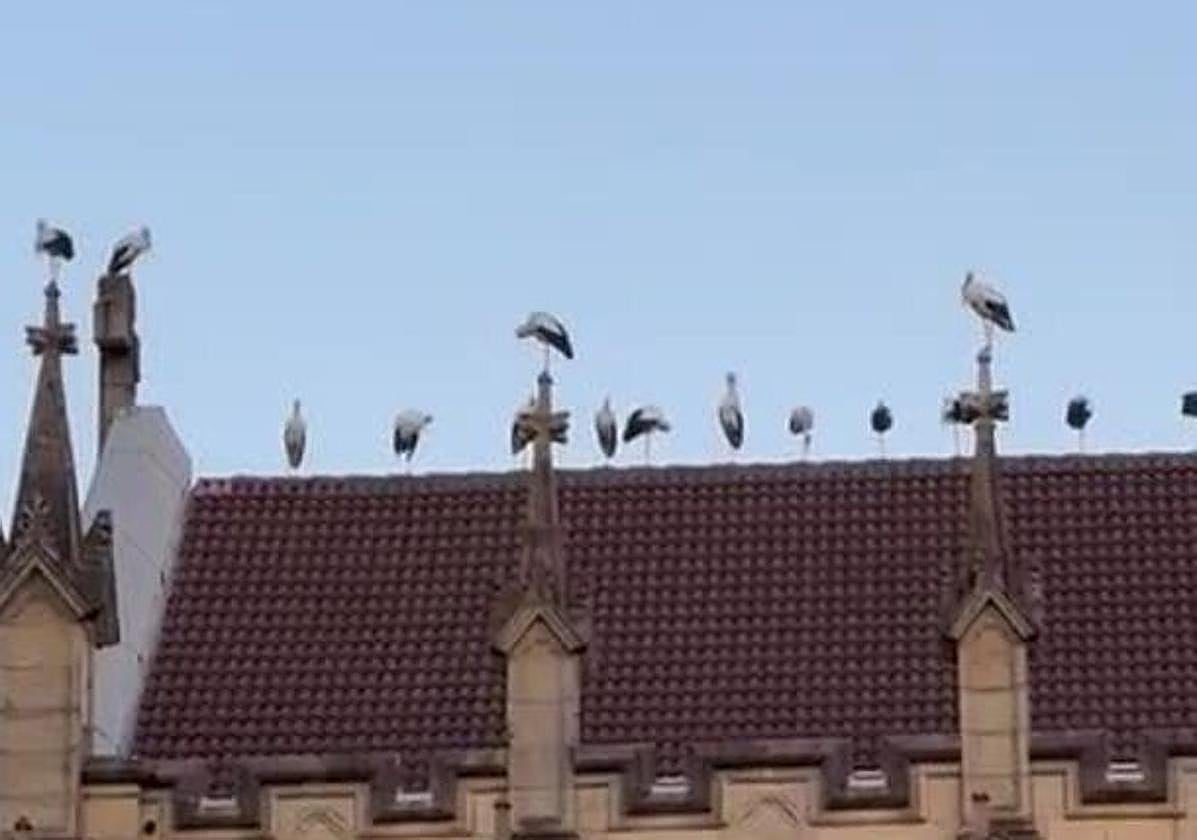 Donostia ya se prepara para una nueva hornada de bebés. Al menos así debería de ser si se cumple con la profecía. Varias decenas de cigüeñas se han dejado ver estos días en el alto de Zorroaga, en Donostia, en la parte más alta de la iglesia. Tristemente, este gran grupo no se quedará mucho tiempo en el territorio y pronto pondrán rumbo a su destino final: África.