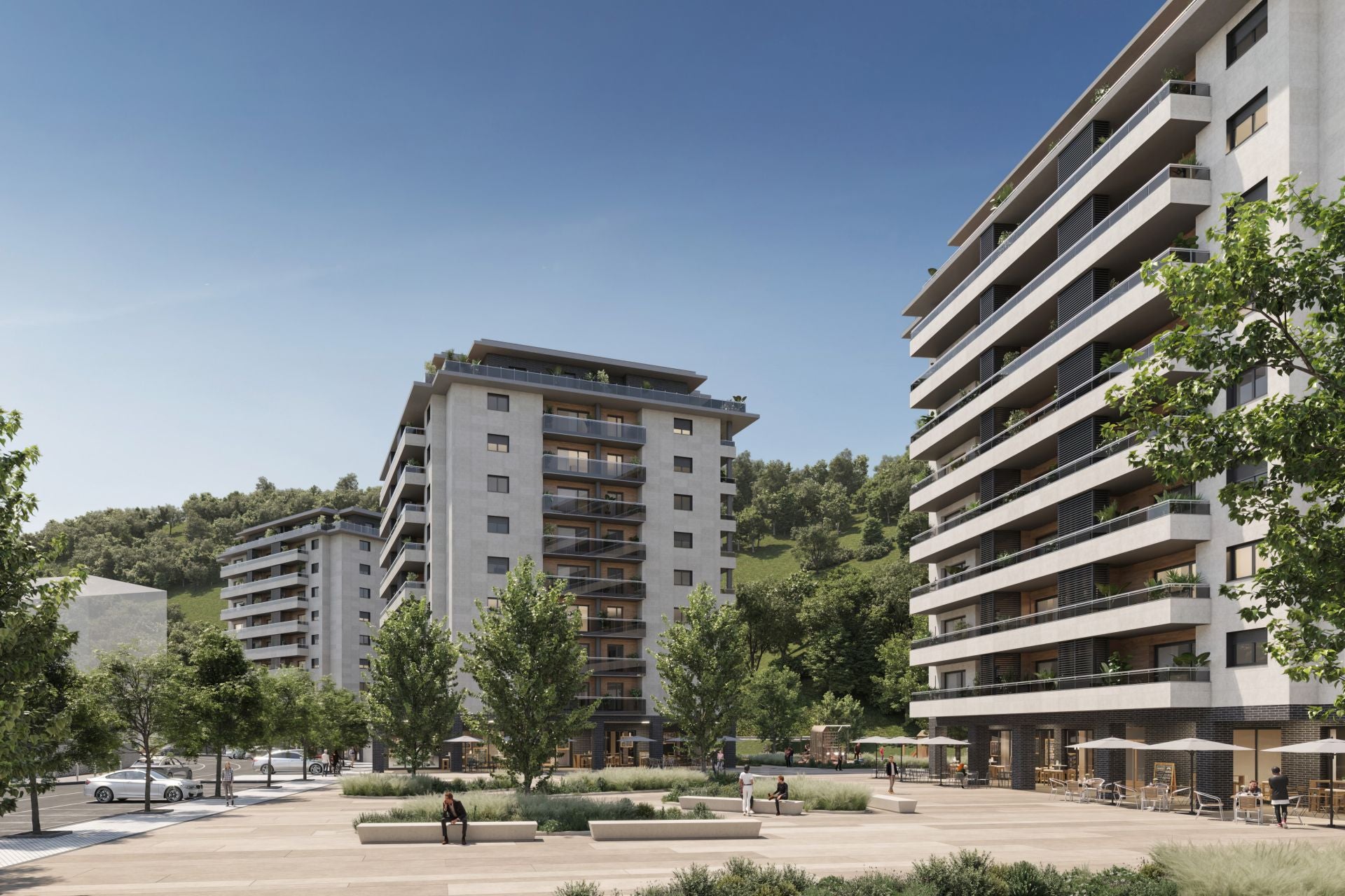 Frente a los dos edificios de viviendas protegidas se generará «una nueva acera en su margen derecha», mientras que en los laterales y la zona trasera «se generarán espacios de plaza y esparcimiento, además de una nueva distribución para el acceso a la estación de Euskotren».
