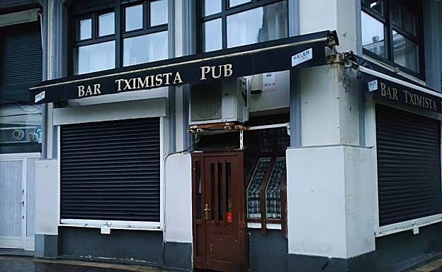 El bar Tximista, en la plaza Biteri de Gros, también ha amanecido con las persianas bajadas.