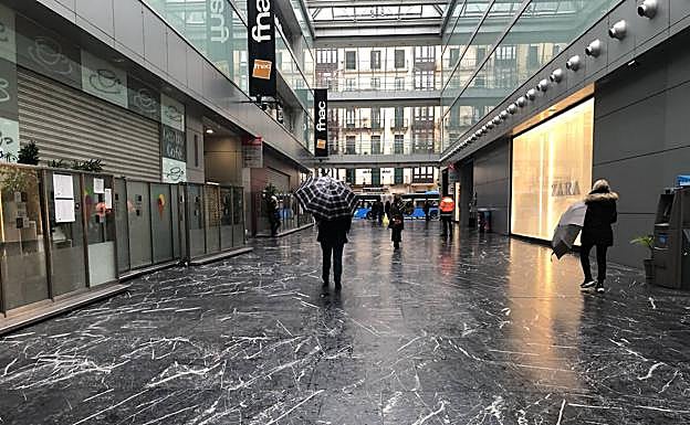 La galería del mercado de San Martín, centro neurálgico del café de media mañana, presenta este aspecto con los dos bates cerrado.