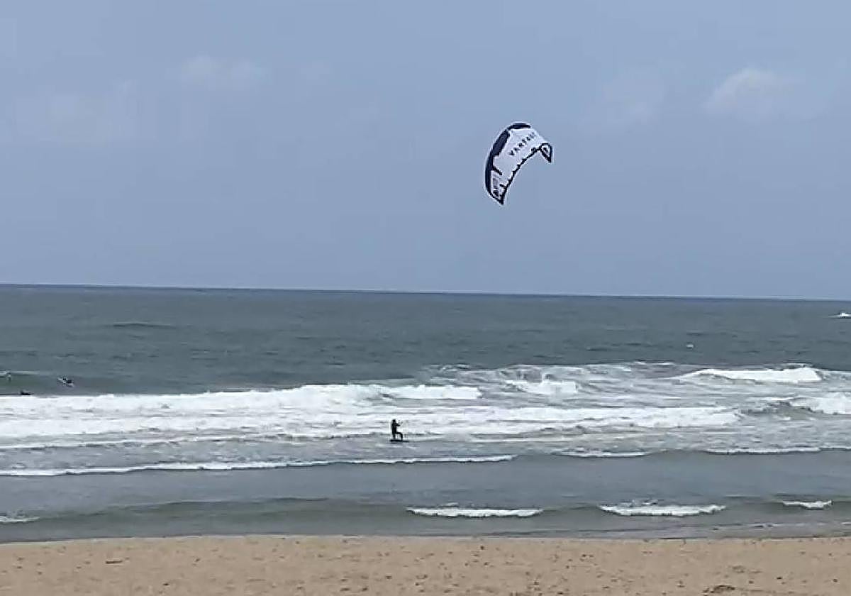 Esta especialidad, también conocida como kiteboarding, combina la adrenalina del surf y la diversión de volar una cometa. En el vídeo se aprecia cómo el protagonista realiza acrobacias y saltos cerca de la orilla para disfrute de los paseantes.