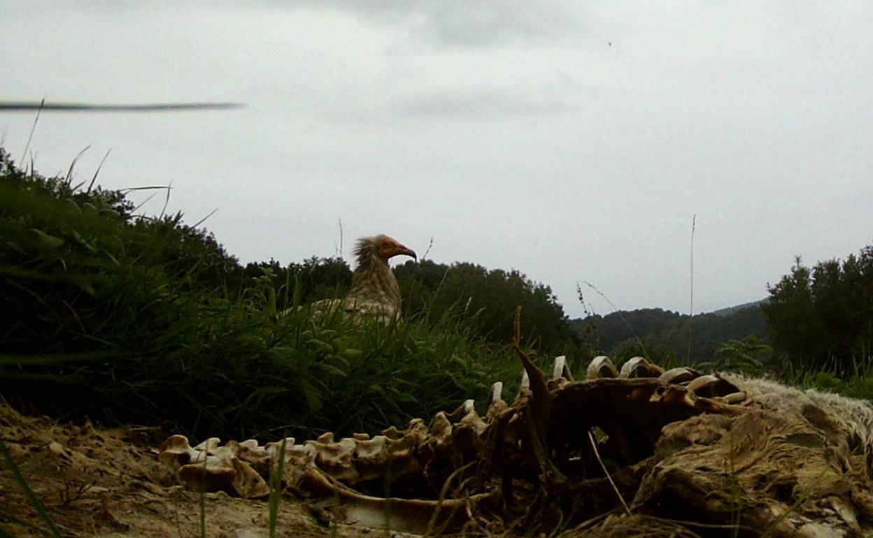 Las imágenes que acompañan estas líneas fueron tomadas por una cámara de fototrampeo para seguimiento de mamíferos que los expertos ubicaron en el lugar donde había fallecido una oveja días.El objetivo era obtener un documento gráfico de esta especie que habita en Gipuzkoa. Posiblemente, esta pareja de animales es la que nidifica en Jaizkibel: «Las veces que se ha observado a estos alimoches portando alimento tomaron esa dirección», según datos facilitados por los ornitólogos de Itsas Enara.