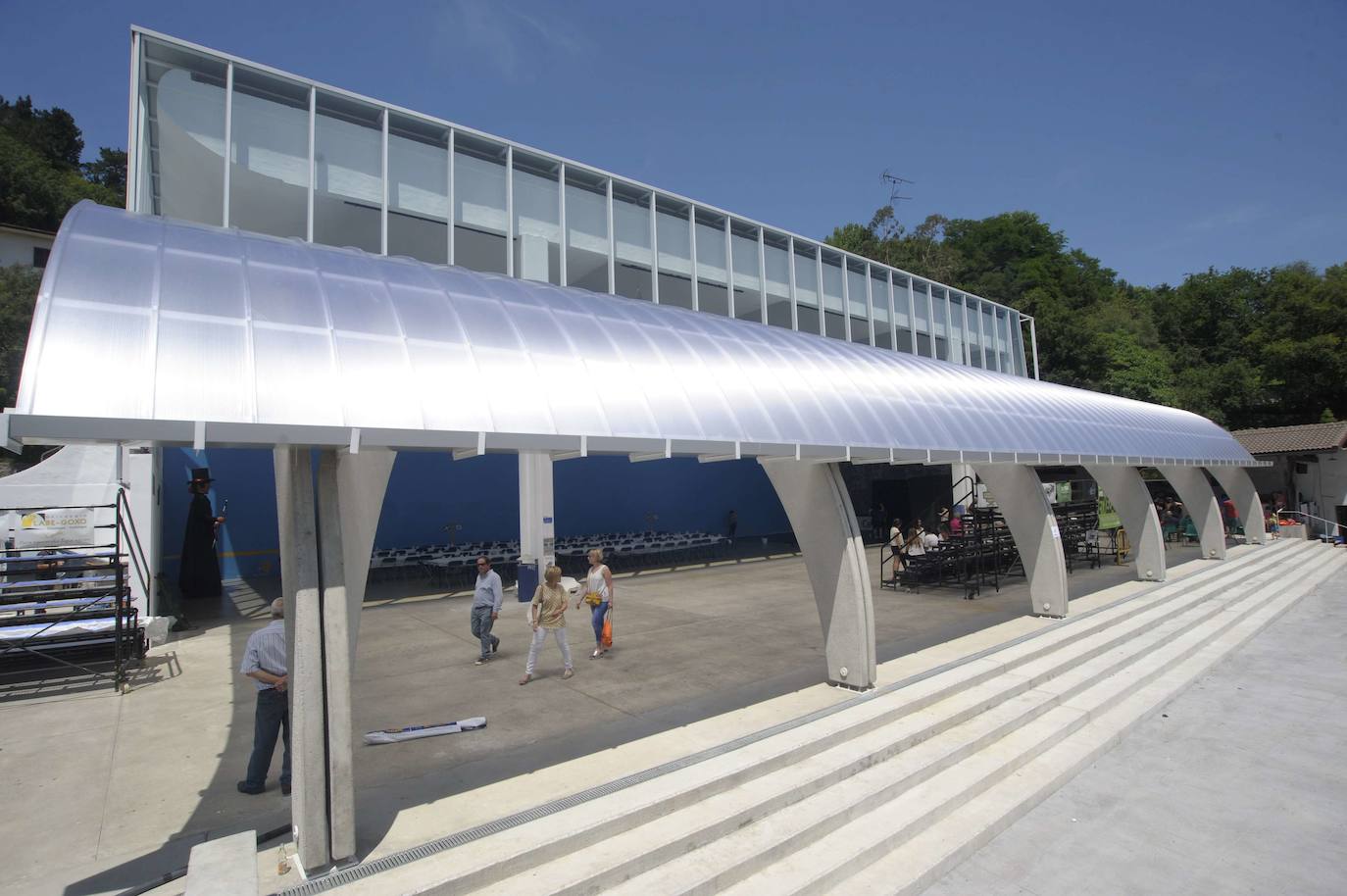 Avda. Añorga 40. Eduardo Torroja recibe en un principio el encargo de realizar la cubrición del frontón y una década después asume la labor de construir otro equipamiento deportivo: el bola-toki. Tal y como recoge su ficha arquitectónica, en ambos casos utiliza el hormigón para demostrar las capacidades técnicas y expresivas del cemento utilizado en el hormigón. En el caso de la cubierta del frontón, utiliza el hormigón en forma de una fina lámina de 5 centímetros de espesor; la principal característica de esta lámina es su perfil, de aspecto ondulado, de gran belleza y originalidad.