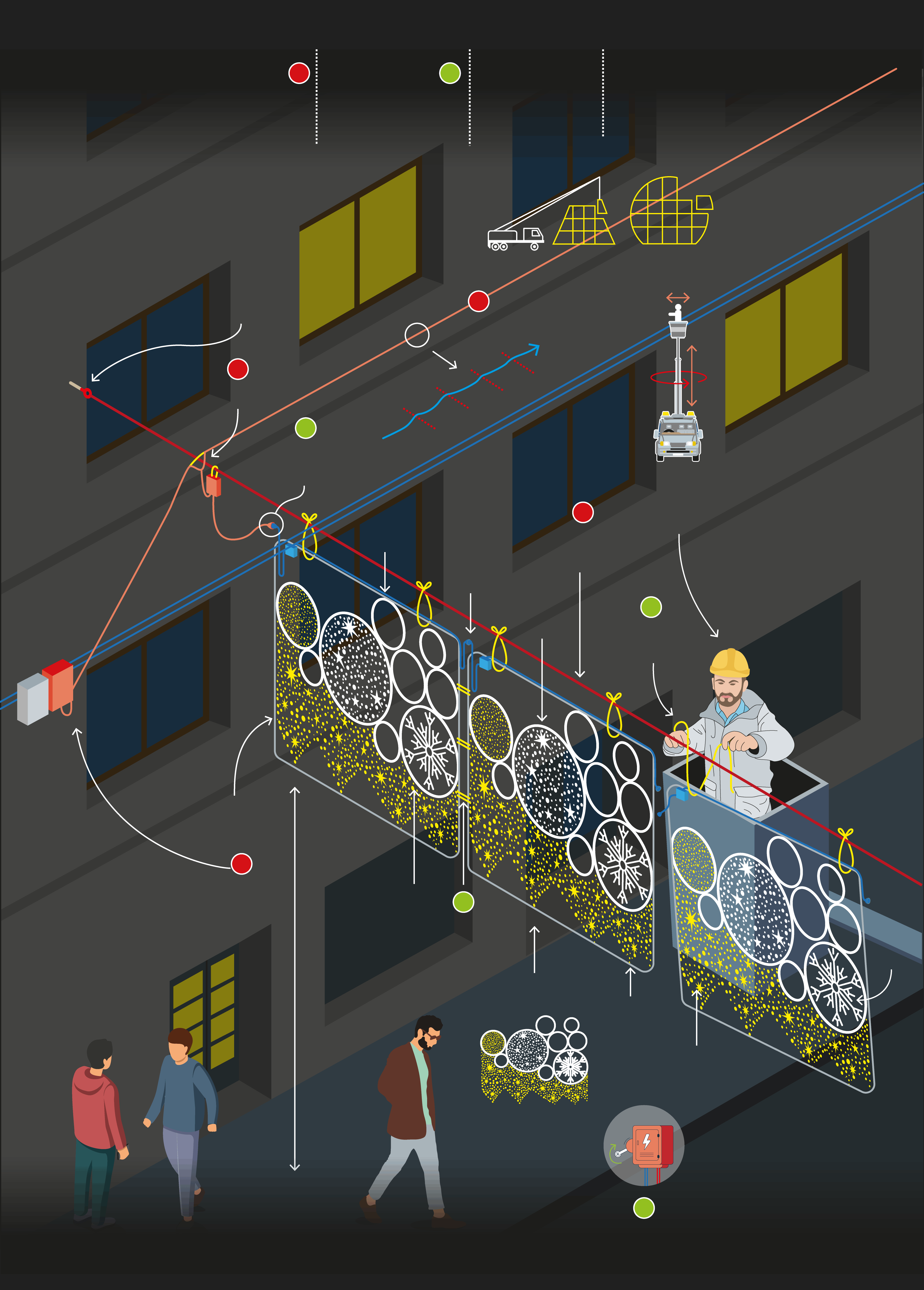 La preinstalación arranca cuatro meses antes de su encendido, que fue la semana pasada. Las luces navideñas iluminan ya la Navidad en todos los rincones de Gipuzkoa con propuestas y decoraciones cada vez más sofisticadas que de un tiempo a esta parte se han convertido en un importante foco de atracción turística en esta época del año. Esto explica las grandes cantidades de dinero que todos los años los municipios destinan a este concepto.