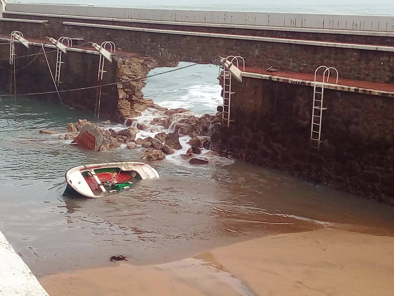 Sí ha sido más visible el embate del mar en Zarautz, en cuyo puerto el mar ha causado estragos. La fiereza con la que la mar ha golpeado el dique del puerto ha provocado que parte del muro se viniera abajo y se haya formado un gran boquete.