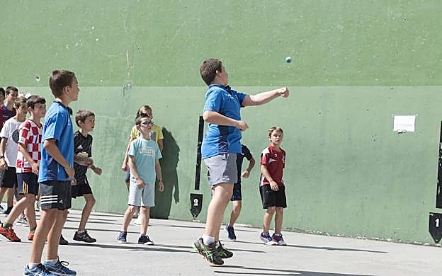Sara Santos A las 11.00 horas el frontón de la plaza de la Trinidad se convertirá en una escuela para los pequeños que quieran iniciarse en el mundo de la pelota vasca.