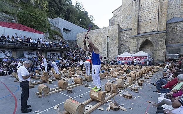 Sara Santos Como cada año, se disputa la Copa de Oro de aizkolaris en Semana Grande. Este año la cita es a las 19.30 horas en la plaza de la Trinidad. Cada participante cortará 14 troncos de 54 pulgadas.