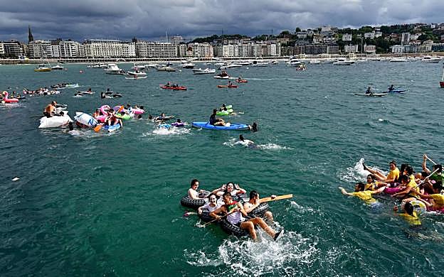 Jose Mari López Tras el montaje de las balsas por la mañana, los 'piratas' se lanzarán al agua en el puerto. Prepara tu embarcación para las 17.00 y ¡a conquistar La Concha!