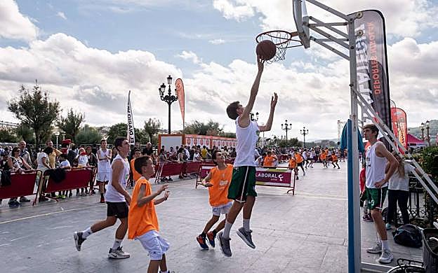 Jose Usoz A las 11.30 horas, en el parque Aitzol, niñas y niños de entre 6 y 10 años podrán exhibir su habilidad en el frontón. Los aficionados al baloncesto se podrán dar cita a la misma hora y lugar para participar en juegos de tiro, de obstáculos y en el concurso de triples.