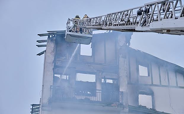 El incendio se inició el martes a las 7.50 horas en esta villa de Jai Alai y los bomberos tuvieron que trabajar durante todo el día en la Calzada de Egia para sofocarlo totalmente. Al menos, no se registró ningún herido. La investigación sobre el origen del fuego no ha podido iniciarse hasta este miércoles. Por el momento, hay un detenido como presunto autor del incendio, un joven de 24 años de origen magrebí que fue arrestado minutos después de iniciarse el fuego en una actuación conjunta de la Guardia Municipal y la Ertzaintza. Fuentes conocedoras de la investigación no concretan aún si se trata de uno de los cuatro jóvenes de origen magrebí que se cree que residían como 'okupas' en el edificio, deshabitado desde hace años.