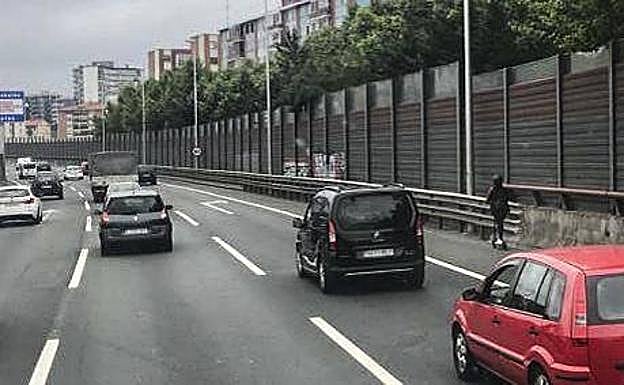 Varios conductores inmortalizaron la temeridad de la joven en el arcén de la autopista