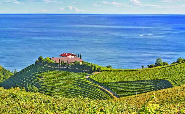 A dos kilómetros de Getaria, subiendo al monte y de cara al Cantábrico, pasearemos entre viñedos emparrados que caen al mar. En Txomin Etxaniz conocerás la cultura del viñedo y las diversas variedades., su historia y la labor de recuperación, y la creación de la D.O. Getariako Txakolina.