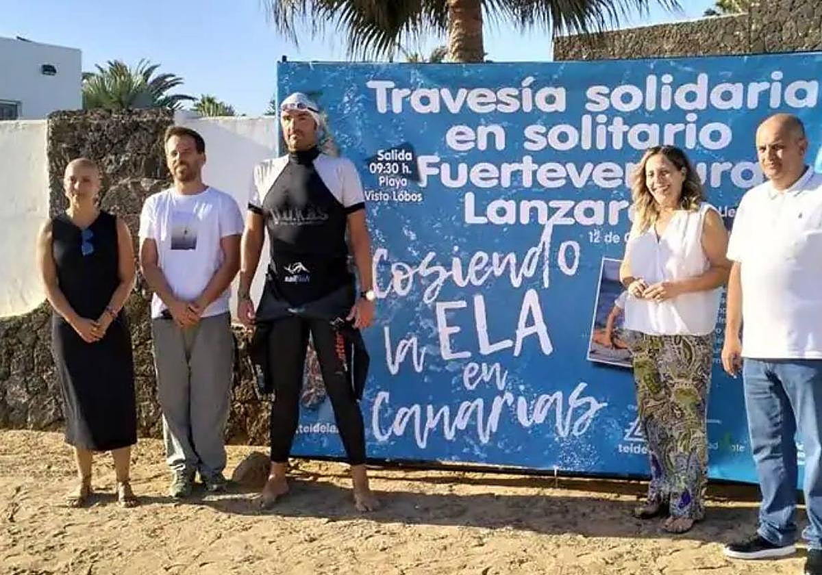 El nadador donostiarra de larga distancia Jaime Caballero sigue firme en su objetivo de dar visibilidad a los afectados por la Esclerosis Lateral Amiotrófica (ELA) y a sus familiares y con tal fin el pasado jueves, 12 de octubre, completó a nado la distancia entre Fuerteventura y Lanzarote.