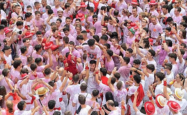 El grito de Unzué ha sido respondido también por los miles de personas que abarrotaban la plaza consistorial con el tradicional '¡Viva!¡ y '¡Gora!', con los pañuelos rojos en alto y en medio de un estallido de júbilo y alegría especialmente celebrado este año por razones que no hace falta explicar.