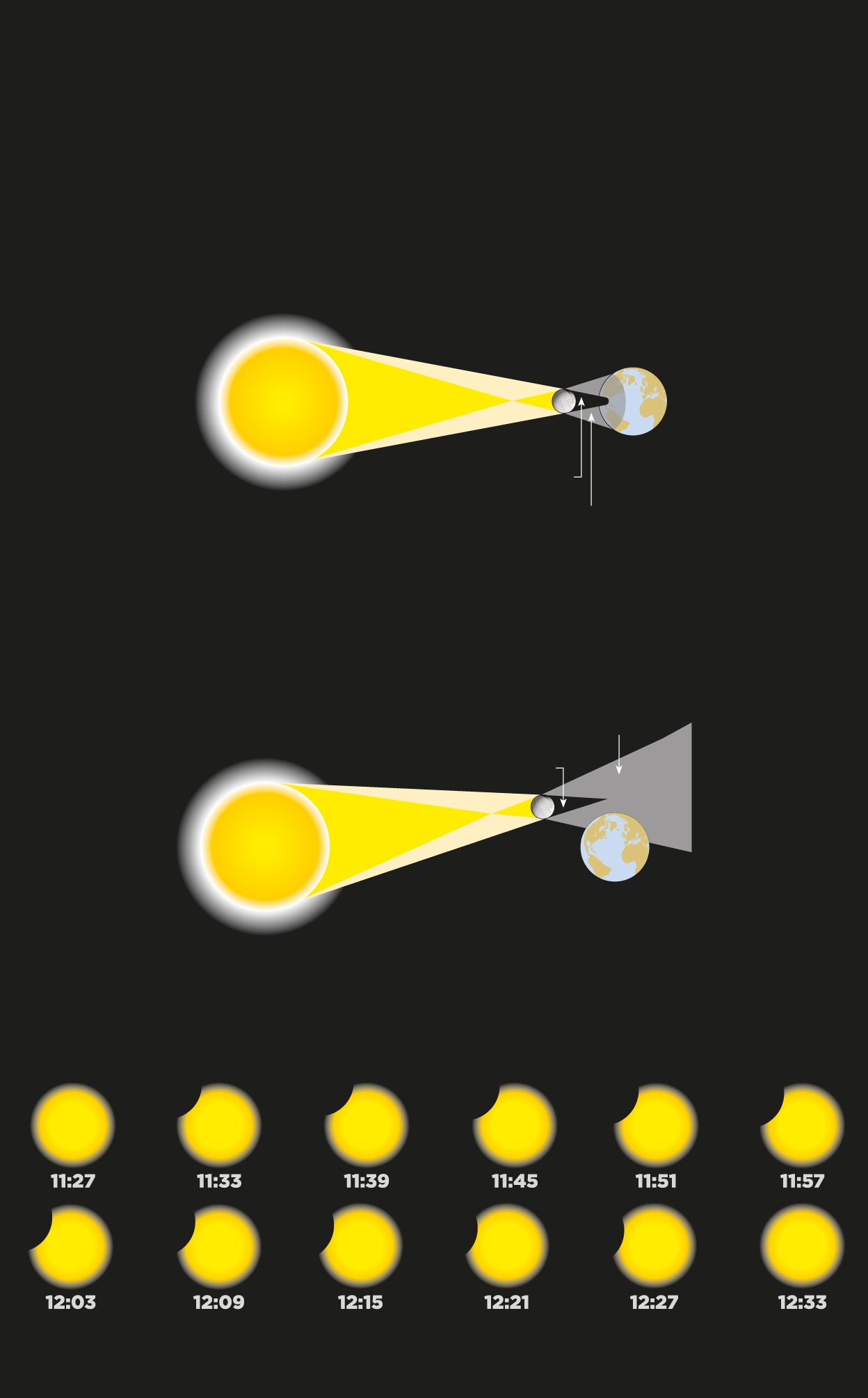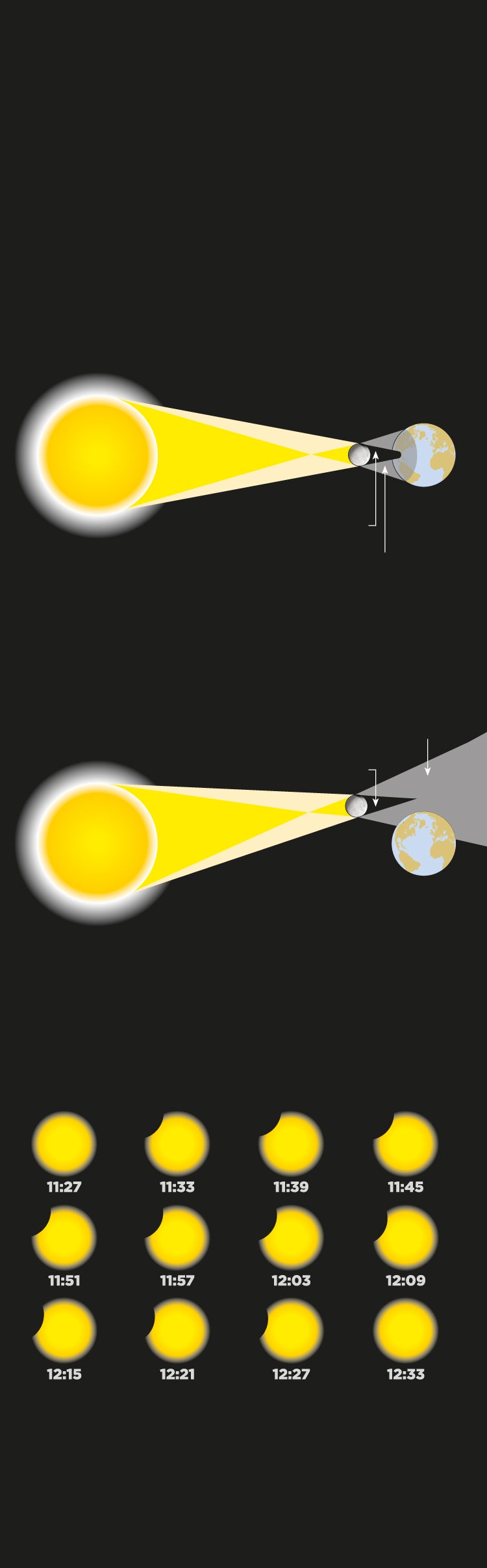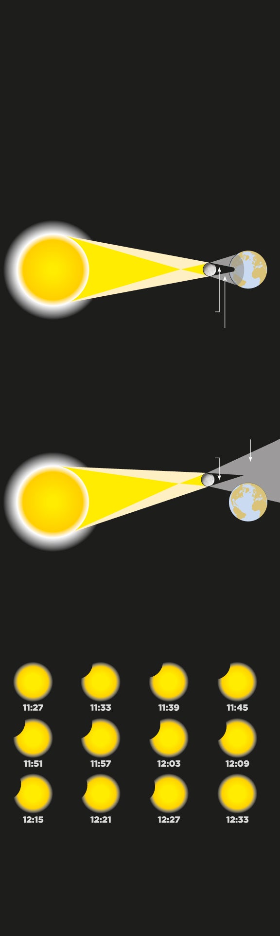 y la Tierra, tapando parcial o totalmente