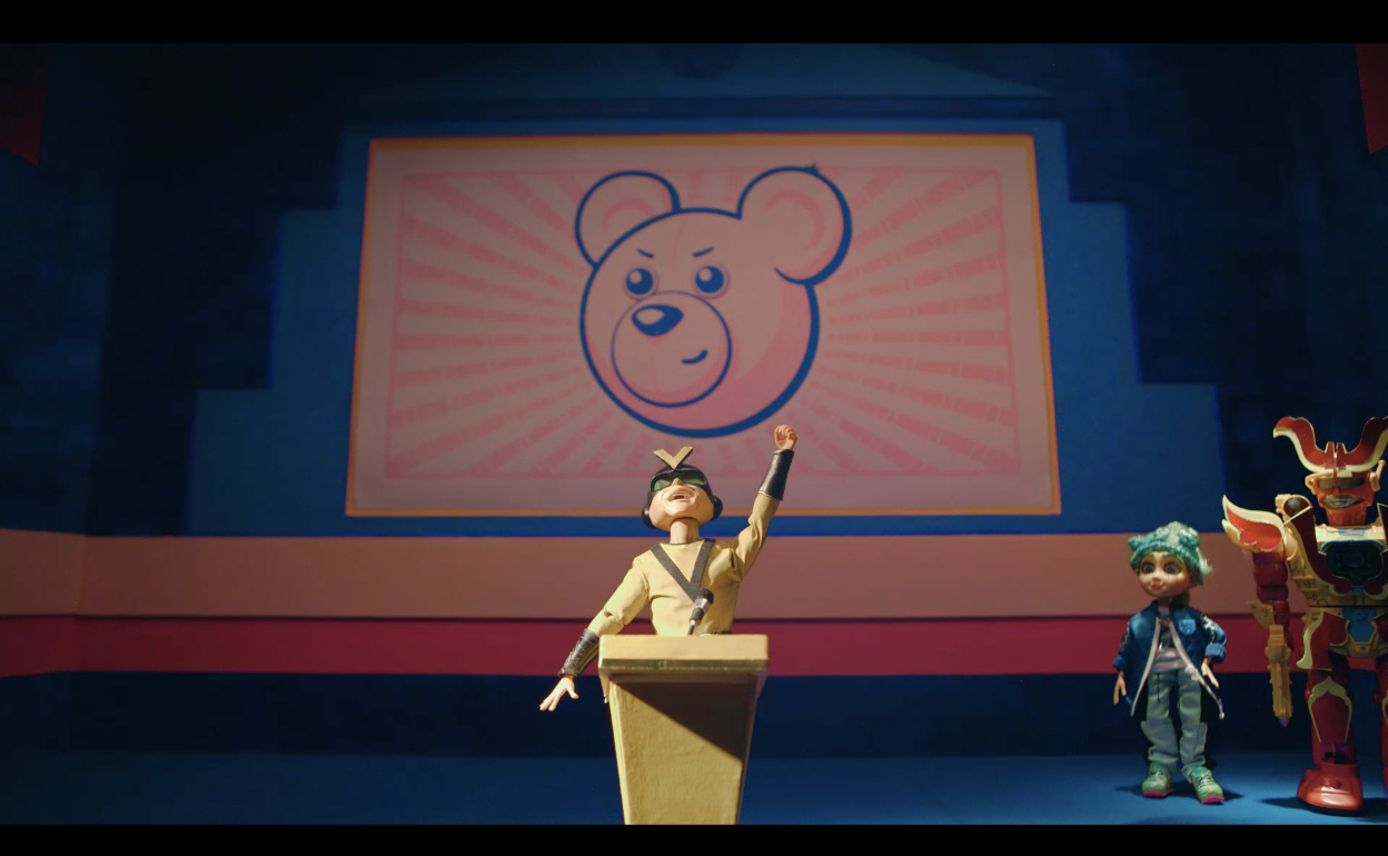 Se abre el telón y una muñeca que recuerda a Daenerys Targaryen avanza hacia el atril. El escenario lo preside un cartel con la cara de un oso de peluche de mirada desafiante. El patio de butacas esta repleto de juguetes expectantes.