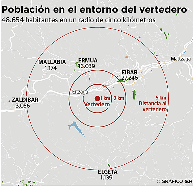 Ninguno de ellos se atrevió a manifestar qué se entiende por «exposición prolongada». Los datos de calidad del aire que se hicieron públicos ayer se tomaron el 9 de febrero, día en el que, según Berraondo, las llamas tuvieron «la intensidad más alta». La analítica practicada aquella jornada en el barrio de San Lorenzo de Ermua, una de las zonas habitadas próximas al vertedero, muestra «una concentración de 700 femtogramos por metro cúbico», cuando «lo normal es que oscile entre 10 y 30».
