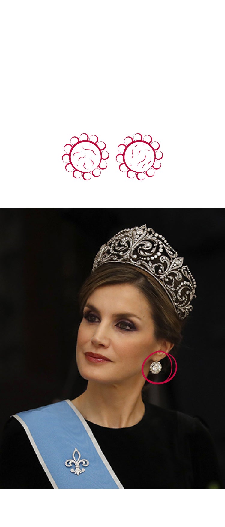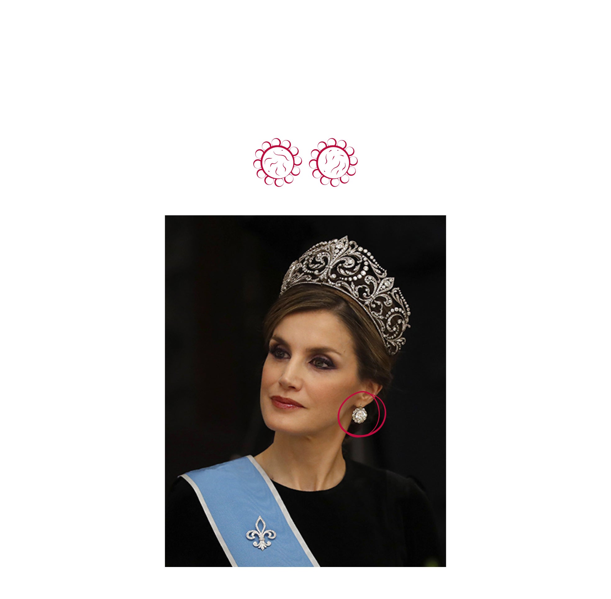 Doña Letizia recurre a ellos con frecuencia para las grandes ocasiones. Se les conoce como los pendientes de chatones. Y, pese a ser una joya exclusiva de las reinas de España, fue los que lució la infanta Cristina el día de su boda con Iñaki Urdangarin.