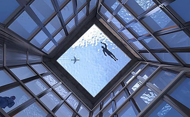 Casi al alimón, en la del Támesis ya están soñando -otros, blasfemando- con dar unas brazadas en la primera 'infinity pool' de 360 grados del mundo. Sería la faraónica guinda, a 220 metros de suelo firme, a un hotel de cinco estrellas y 55 plantas que quiere construir una empresa especializada precisamente en eso, en piscinas infinitas. Londres ya cuenta con una de las piletas más famosas del planeta, una de diez metros de longitud emplazada en la planta 52 de The Shard, el techo de metal y vidrio de la Unión Europea, con 310 metros, y continente de otro establecimiento hotelero de campanillas. Pero Compass Pools quiere una más grande y celestial. «Si se mantienen todos los inversores y constructores», el plan comenzará a ejecutarse en 2020, acaban de anunciar los responsables de la compañía a través de su web.
