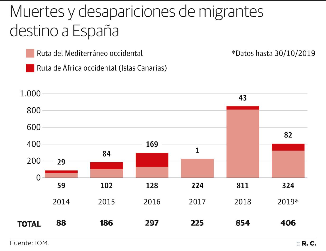 En los mares que llevan a España, en el primer trimestre de 2019 han muerto 354 mujeres, hombres y niños, al intentar cruzarlos. «Hay fuertes indicios de que muchas más personas pueden haberse perdido sin dejar rastro mientras intentaban llegar a España», dice el reporte, personas que pierden incluso su identidad en el naufragio. «Las personas que intentan migrar a través del Mar Mediterráneo hacia Europa provienen de muchos países, abarcan edades y enfrentan riesgos variables».