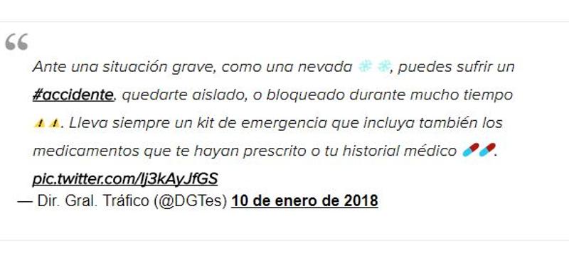 La DGT borra el tuit con su 'kit antinevada' ante las críticas recibidas