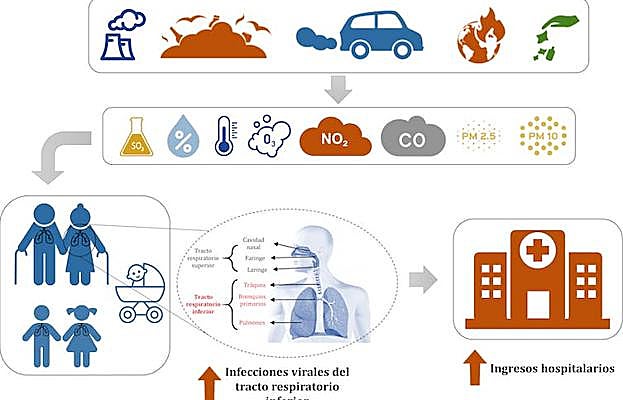 Además de los contaminantes, los factores climáticos (temperatura, velocidad del viento, humedad, tormentas eléctricas) también están asociados con una mayor probabilidad de infecciones. Se debe a que condicionan la supervivencia y la transmisión de los virus respiratorios y la susceptibilidad del huésped.