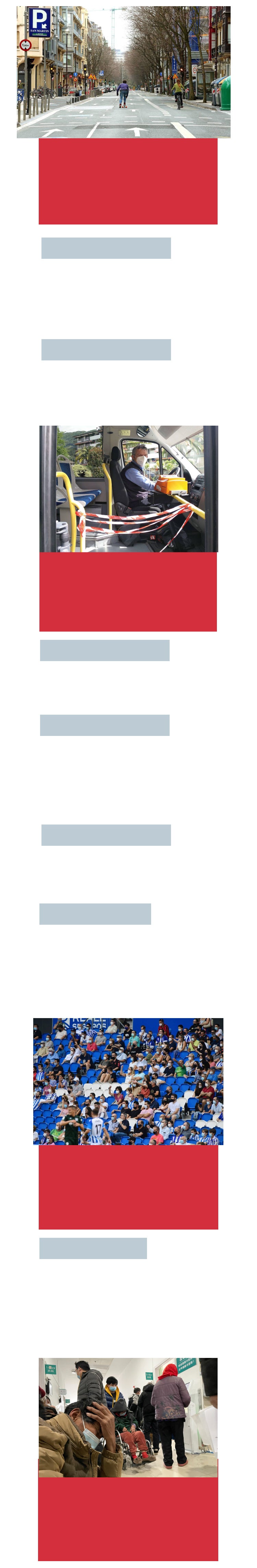 Qué lejana parece la fecha 14-03-20. Ese día el Gobierno de Pedro Sánchez decretó el Estado de Alarma por la extensión de la ... pandemia del Covid en todo el mundo. Menos de dos meses después Euskadi decretó el uso obligatorio de la mascarilla en el transporte, y la obligatoriedad se fue extendiendo poco a poco a otros ámbitos cotidianos. Septiembre de 2020 quedará en el recuerdo de todos ya que miles de niños empezaron un curso escolar marcado por el uso obligatorio de la mascarilla, los grupos burbuja, la entrada escalonada a las aulas. Hubo que esperar hasta el 25 de junio de 2021 para que se retirara la protección siempre que haya distancia. El Gobierno Vasco eliminó la obligación de llevar mascarilla en exteriores siempre que se mantenga una distancia de al menos metro y medio. El 20 de abril del pasado año el Gobierno decretó la eliminación de la obligatoriedad del uso de los cubrebocas en espacios interiores después de 700 días. Este es el recorrido visual de lo acontecido en Euskadi por culpa del coronavirus.