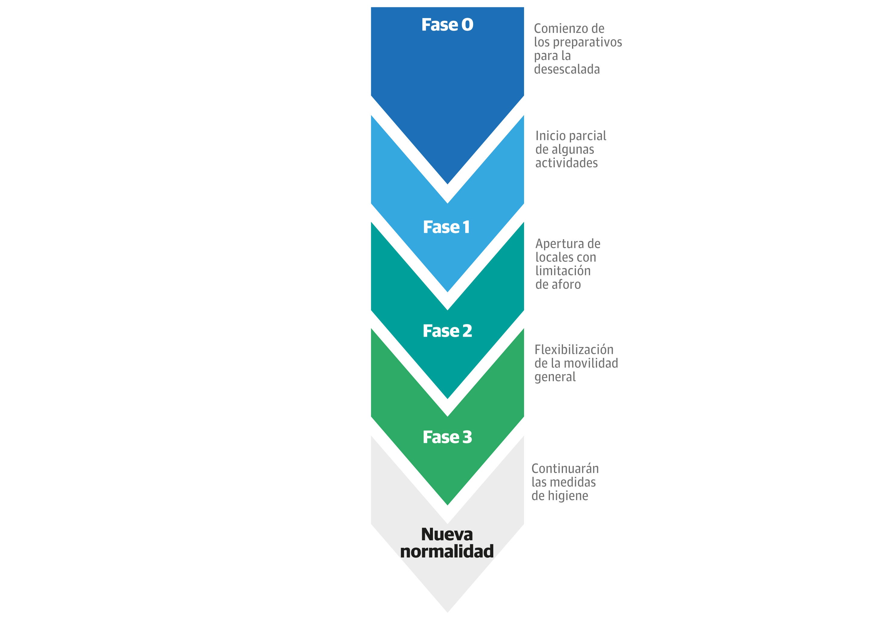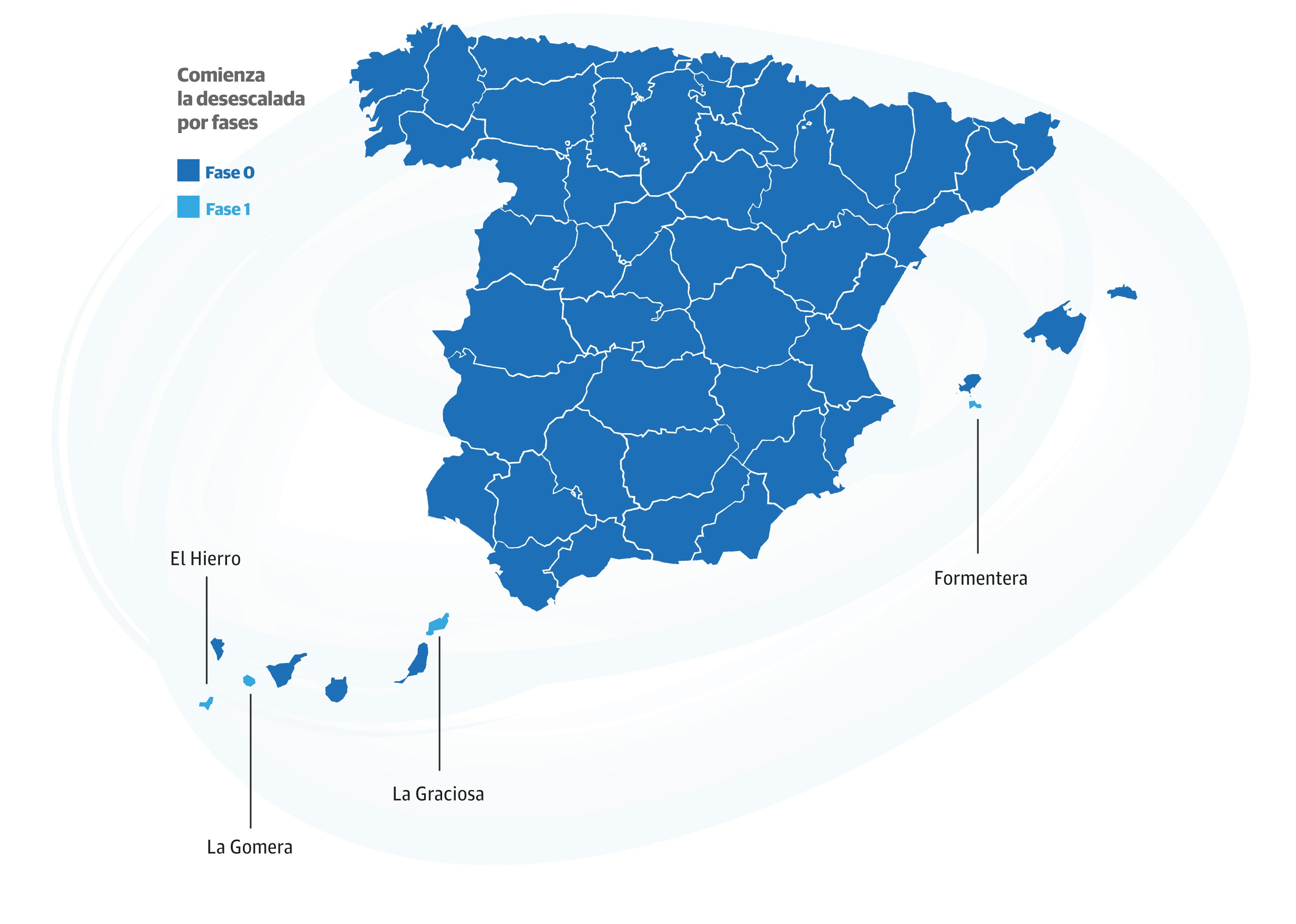 Ya hay plan para la desescalada. Según ha anunciado Pedro Sánchez, se llevará a cabo en cuatro fases según las cuales se irá relajando el confinamiento. No serán iguales para todo el territorio, porque las fases se irán implementando a nivel provincial según se cumplan los requisitos exigidos. Se decide que Formentera en las Baleares y La Gomera, El Hierro y La Graciosa en Canarias pasen directamente a la fase 1 el día 4, mientras el resto de España empezará esta desescalada en fase 0.