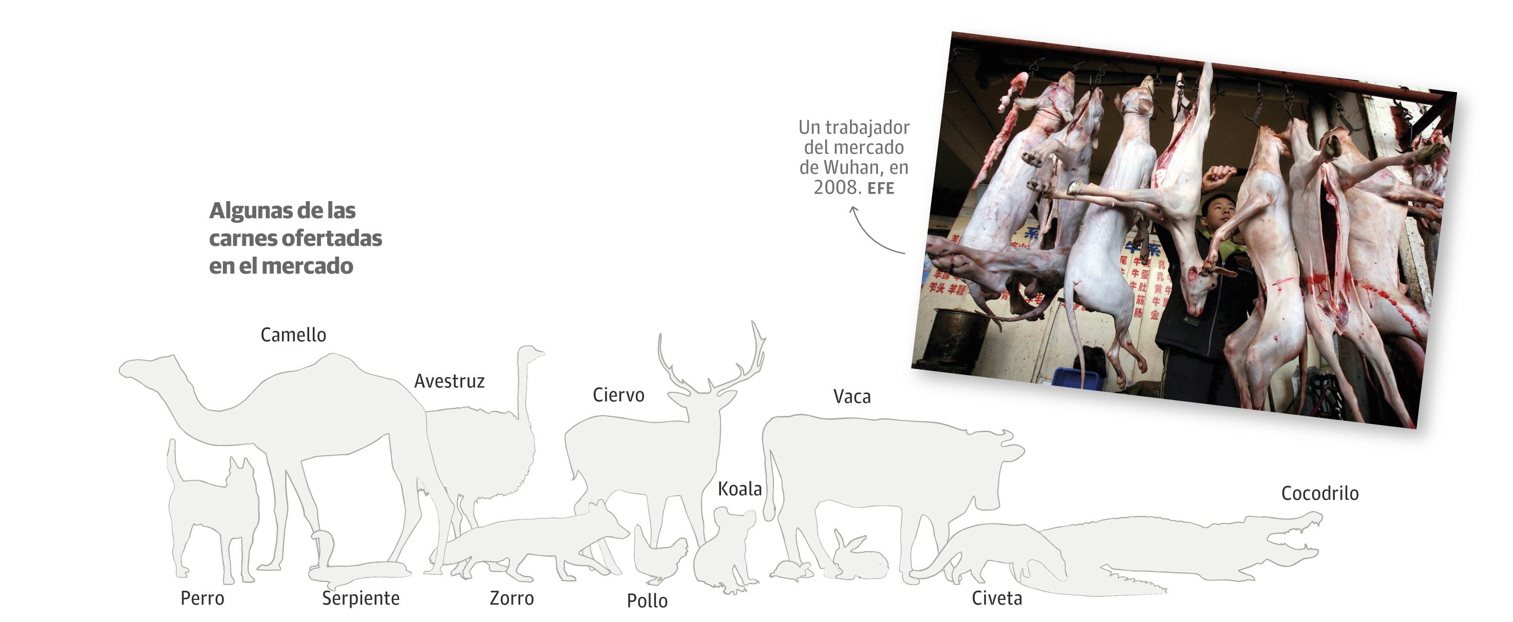Primera muerte. Hay 40 contagiados y toma fuerza la hipótesis de que el foco está en el mercado de marisco de Wuhan. Un espacio en el que se ofertaban cientos de animales, vivos y muertos. Desde cocodrilo a pangolín, pasando por vacas, perros o serpientes.