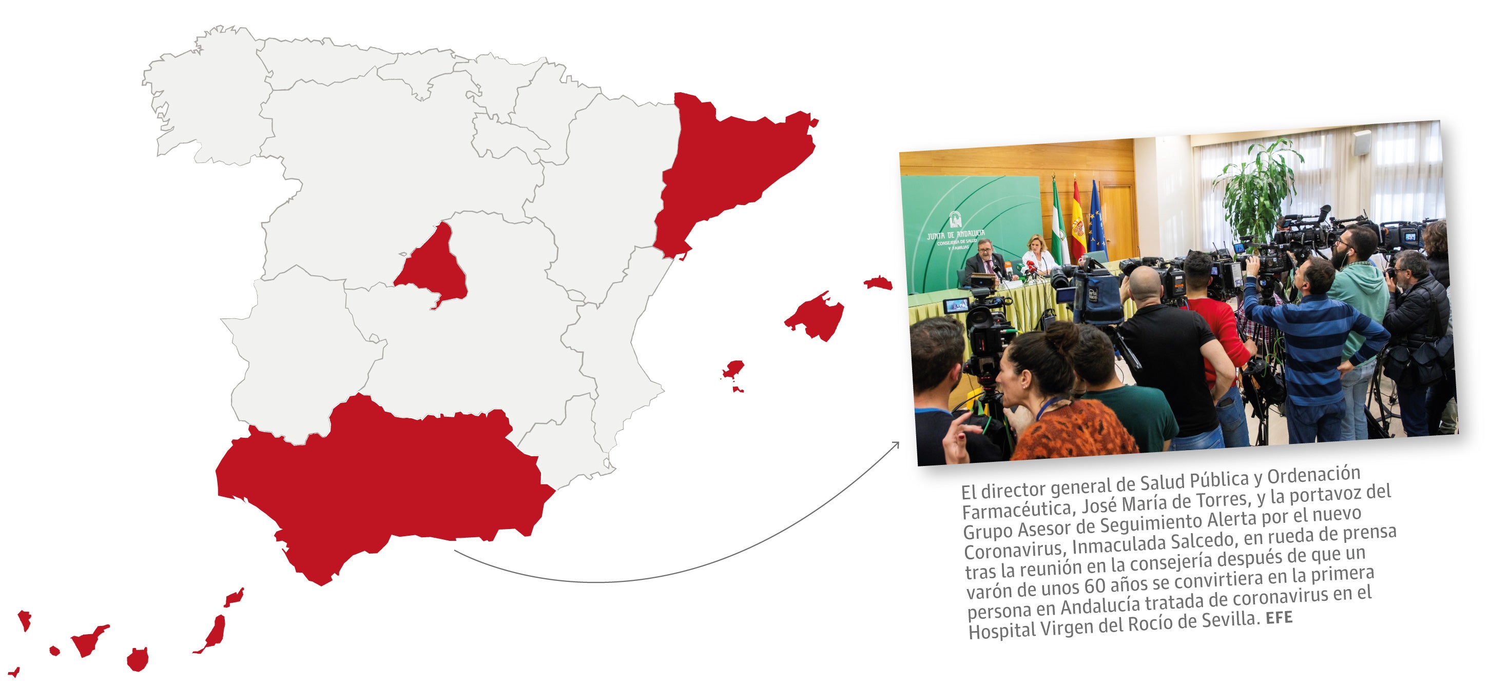16 positivos en España. En Sevilla han reportado el primer caso de coronavirus con contagio local y los expertos avanzan que ello quiere decir que el virus ha estado circulando en el país sin ser detectado. El resto de personas diagnosticadas hasta entonces habían tenido contacto con el virus en el extranjero. El panorama cambia.