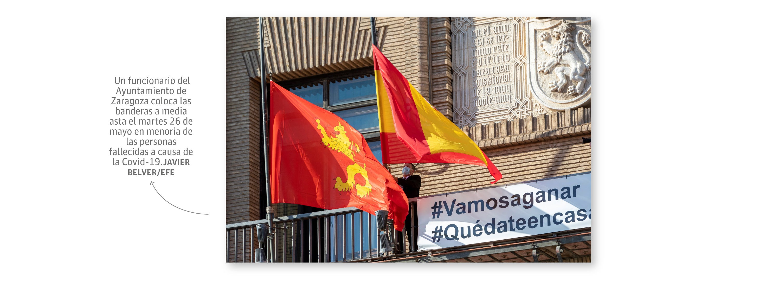 España amanece de luto oficial, con las banderas a media asta en recuerdo de las víctimas del coronavirus, 27.118, según los últimos datos facilitados. Así permanecerán hasta el viernes 5 de junio, diez días en total para «llorar por tantos miles de compatriotas que hemos perdido en esta pandemia», recordó el Rey en el acto organizado en Zarzuela al mediodía.